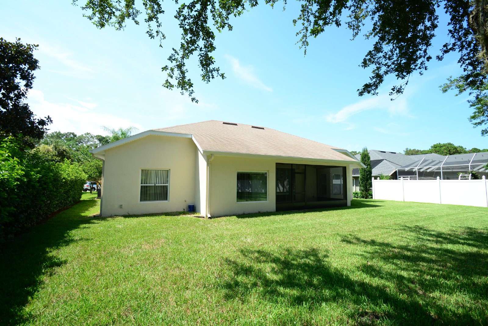Deposit free living (for qualified renters through Obligo)! Beautiful home with over 1700 sq ft. Large driveway and oversized garage. Enjoy morning coffee out on the screened-in lanai and views of the private backyard. Cozy dining area. Vaulted ceilings. Spacious living room and has custom built nook for TV, books or nick-nacks. Eat-in kitchen featuring: plenty of counter space, cabinetry, pantry and breakfast nook. Laundry room has cabinetry and shelving to store cleaning supplies and washer/dryer hookups. Trey ceiling in master bedroom with adjoing master bath. Master bath has his and her sinks, garden tub and walk-in shower, and his and her closets. All bedrooms are nicely sized. Nearby: walking and biking paths, conveniently located in Cypress Knolls subdivision, shopping, dining, parks and just a few minutes drive to the beach. Call today to book a private tour!